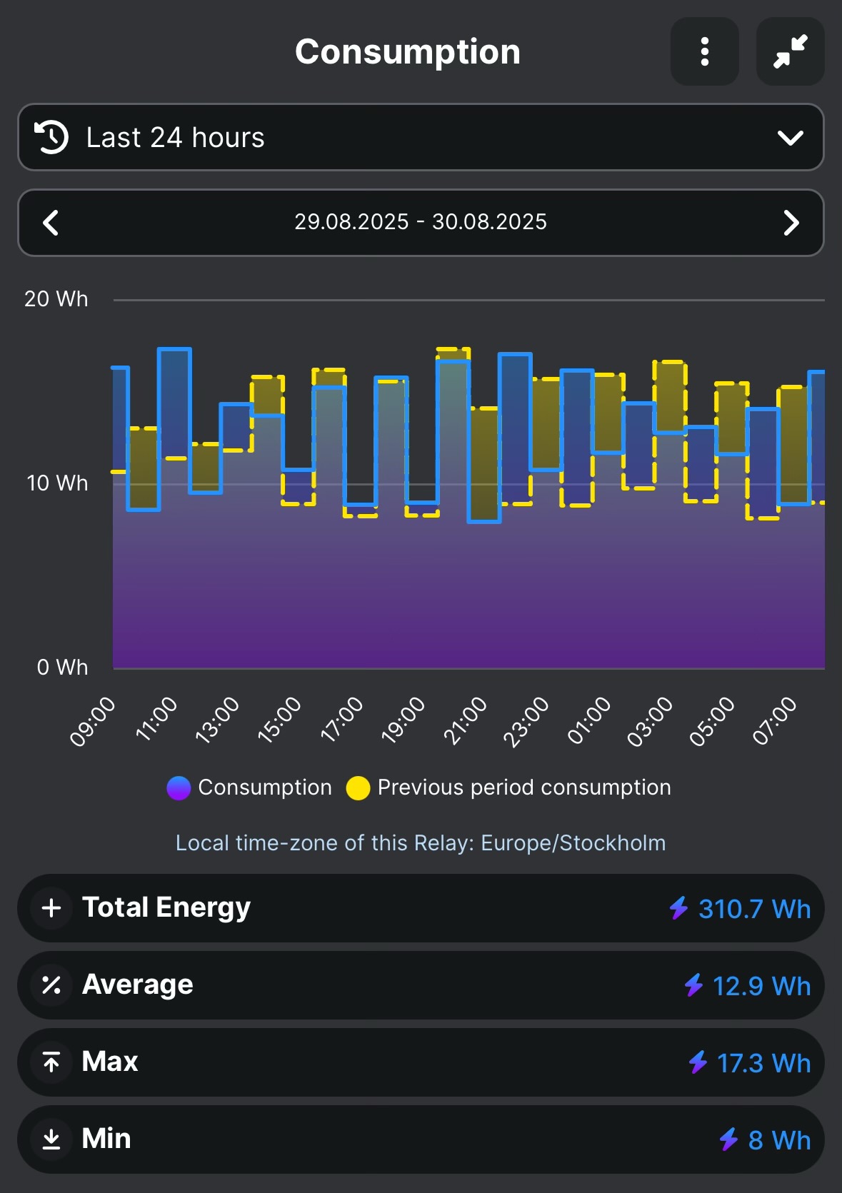 I’ve had it plugged into an energy monitoring smart meter, and collected the below screenshot