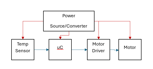 Project goal: Turn on fan/motor when ambient temperature is greater than 25 C.