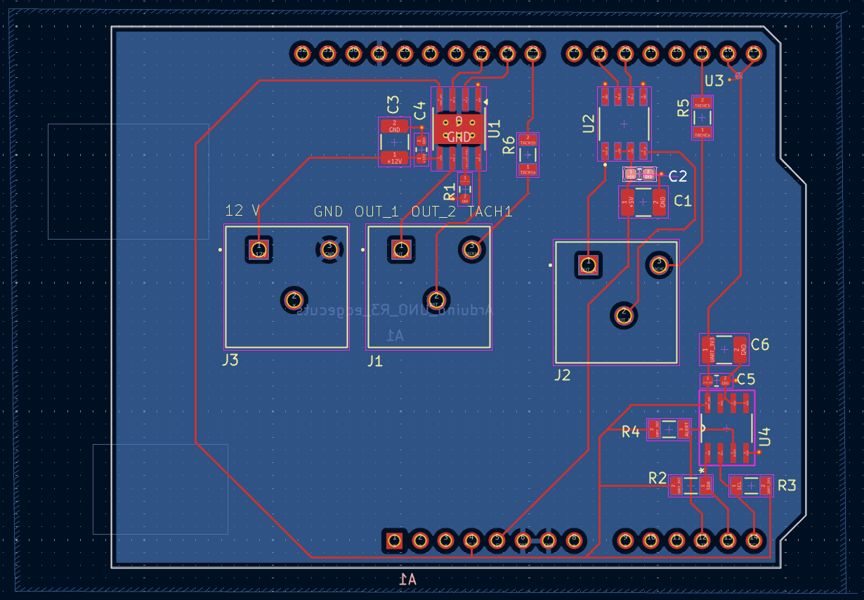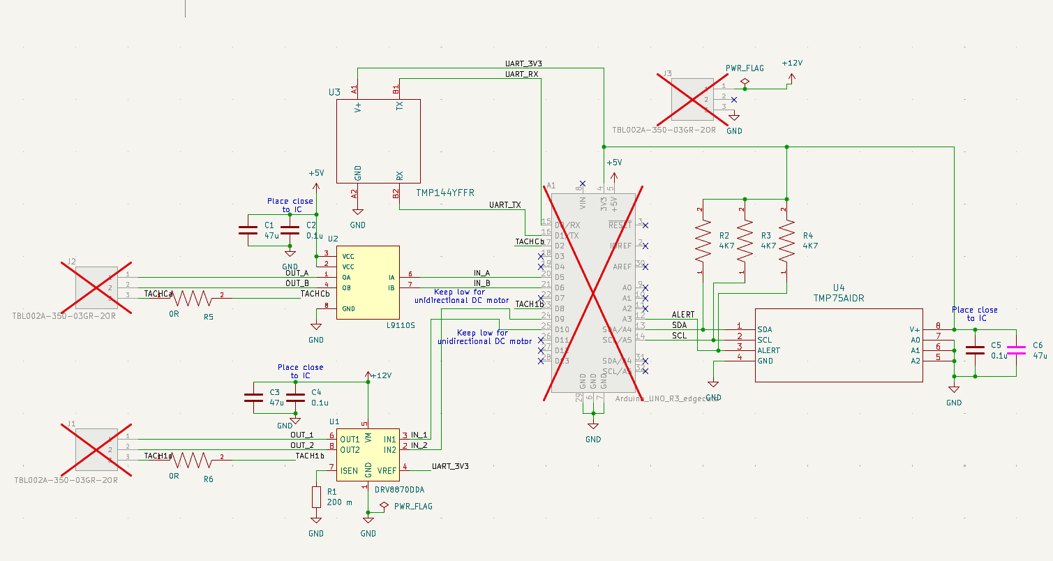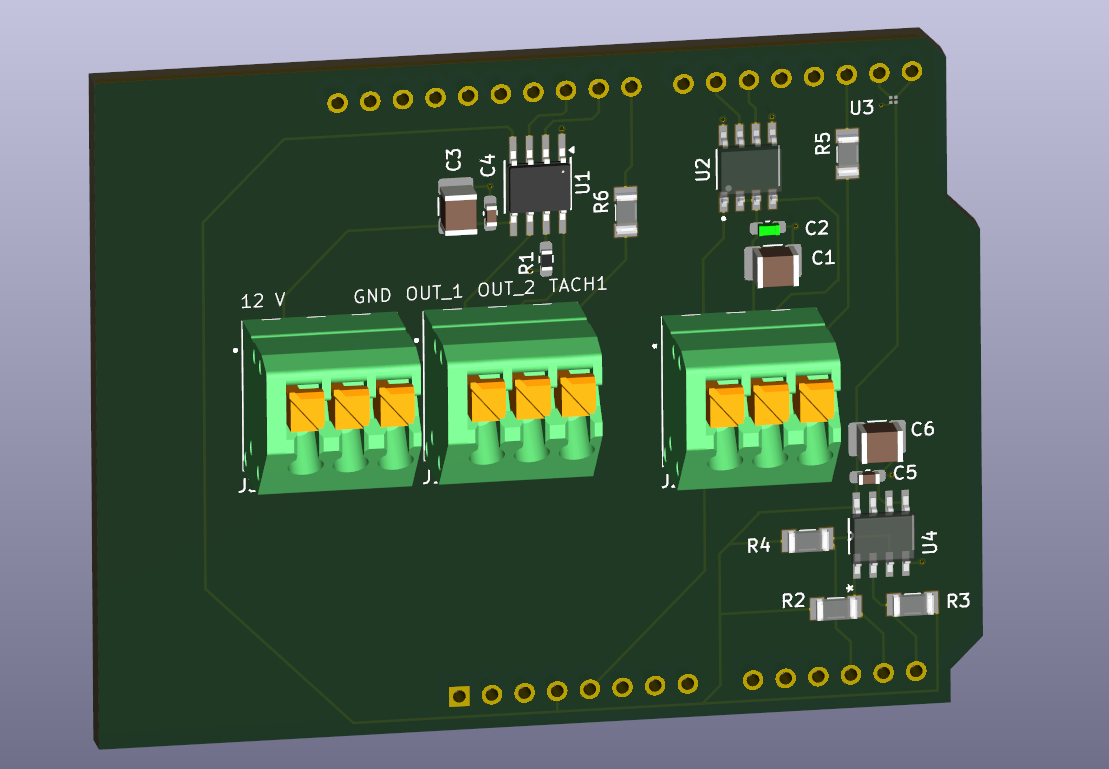 I am adding a couple of options for driving the fan. Since most fans appear to be brushless DC motors, using a dedicated H-bridge motor driver seems overkill as I may only use one arm/control. I may choose to control with just one FET (still to be added).