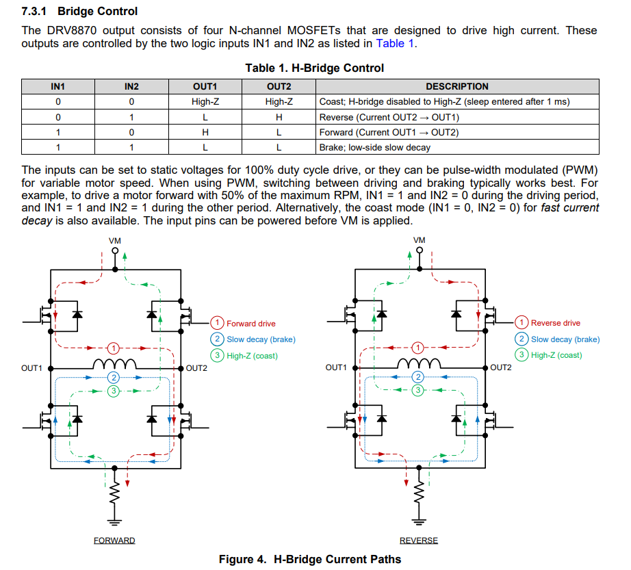 | TI | DRV8870DDAR | Single H-Bridge | $0.26 | 28000 | Good datasheet with layout guidelines https://www.digikey.com/en/products/detail/texas-instruments/DRV8870DDAR/5428828?s=N4IgTCBcDaICICUBqAOFB2ADHOBBBIAugL5A |