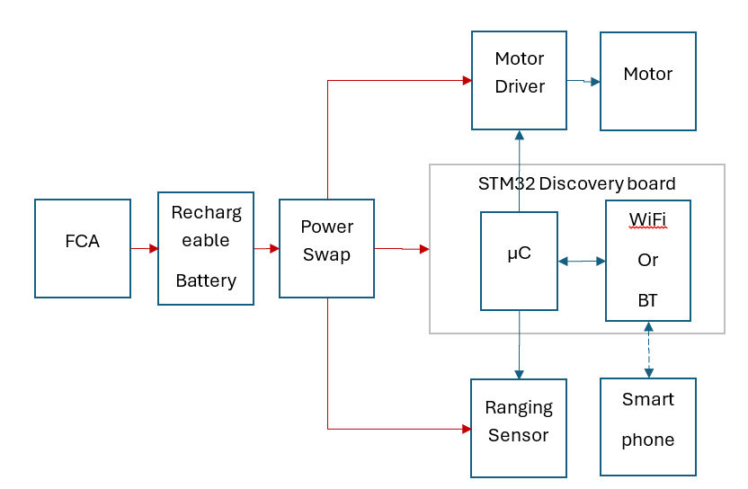 This is an attempt to understand the relationship between different blocks/components. The components haven’t been selected but used as reference to see what type of voltages and power consumption may be required.