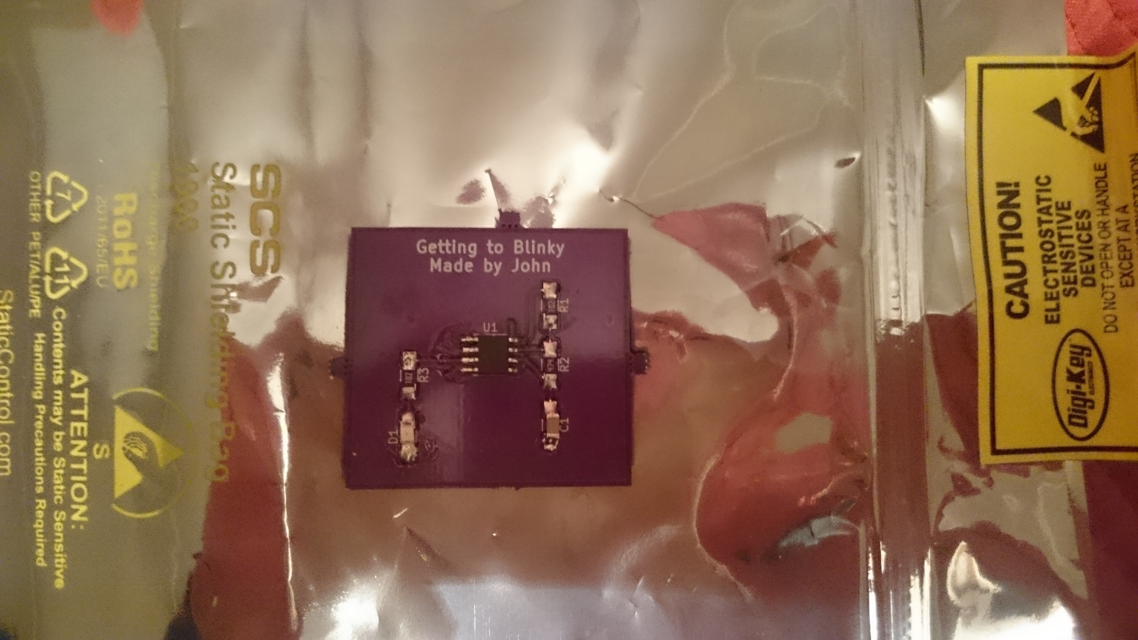 CE related I built the getting to blinky board today, which I think may have been some of the worst soldering I’ve done in a while, but it worked from the very beginning (I knew about the ground issue from the video before I sent to fab), so I can’t complain. I also got the CE Header border and tinsy so I can put some headers or something on that. Just started the sensor board videos.