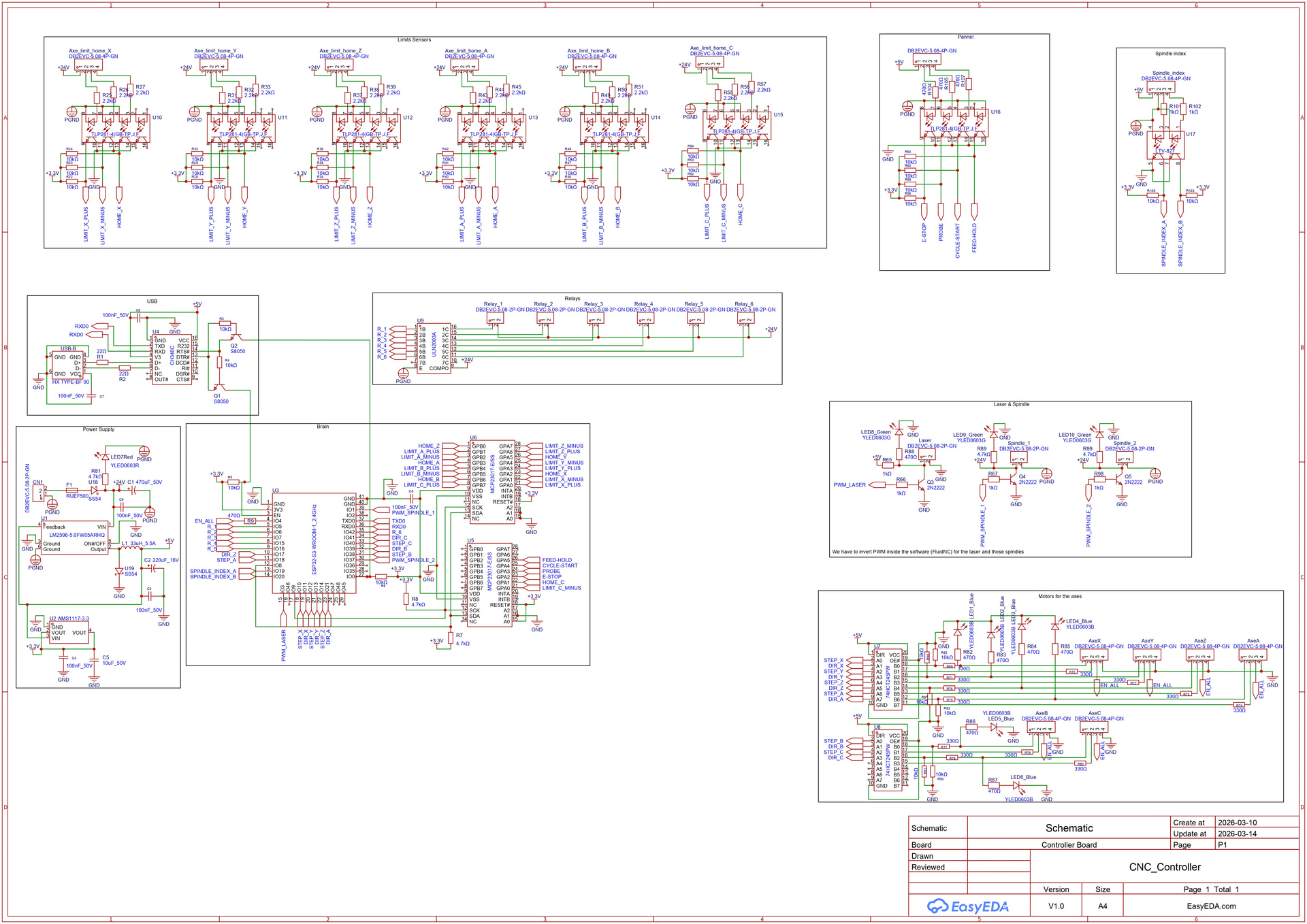 I’m an engineering student designing a 6-axis CNC controller for my milling machine (2.2kW spindle, 24k RPM). This is my first PCB design, and I’ve spent time cleaning up the schematic and layout based on initial feedback.